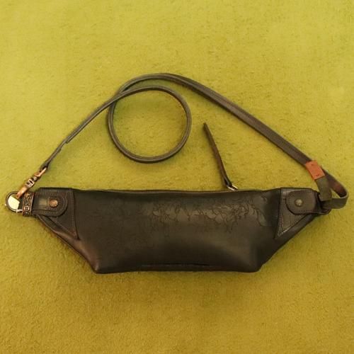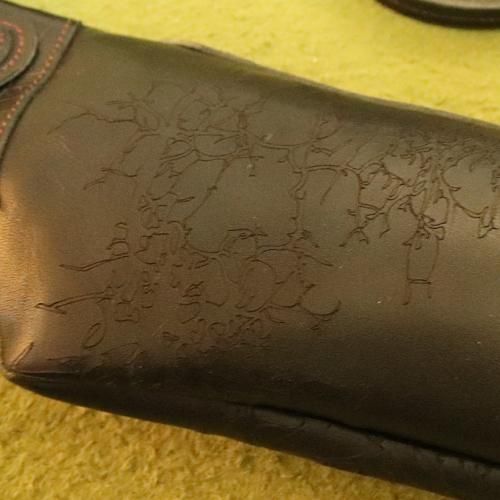 このバッグは牛革(栃木革)を使って彫刻を入れ、バッグに仕上げています。