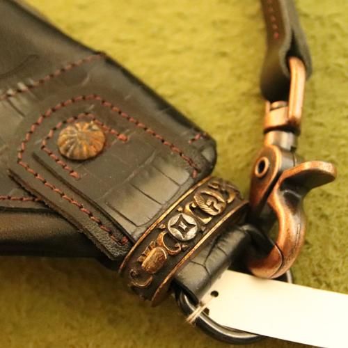 そしてもう一つの特徴は柄(つか)の中(縁頭)の縁(ふち)と言う部品(アンティーク)を付けてオリジナルのボディーバッグに仕上げました。