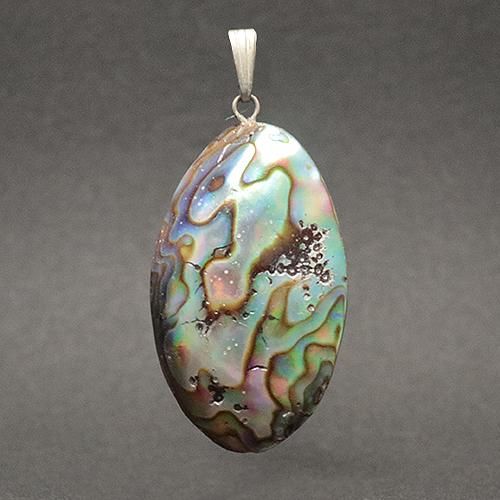 アワビ(アバロン)を使ったペンダントです。天然素材のため型、色、大きさ、重さが違います。