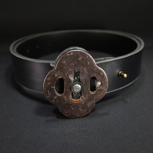 バックルに刀の鐔(古い1点もののツバ)を使用して、本革ベルトに仕上げました。