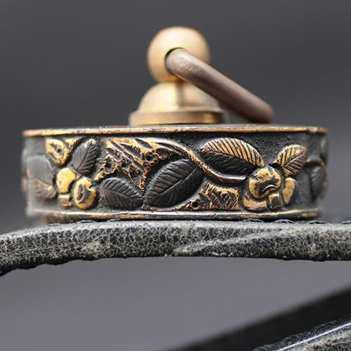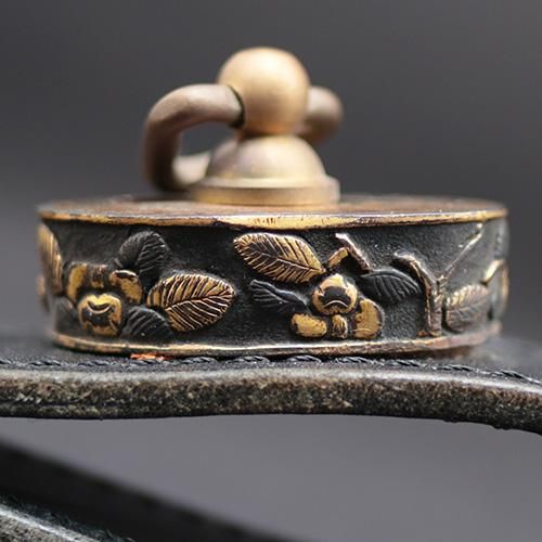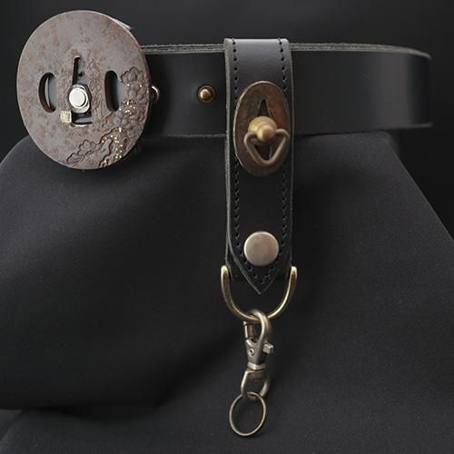 刀の柄(つか)の縁(ふち)頭(かしら)という縁の部分を使用した当店オリジナルの本革キーホルダーです。
