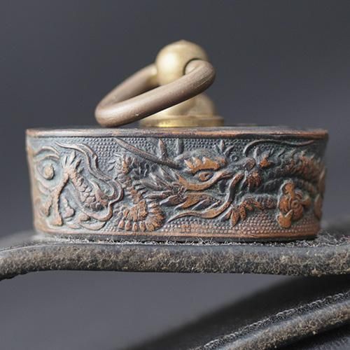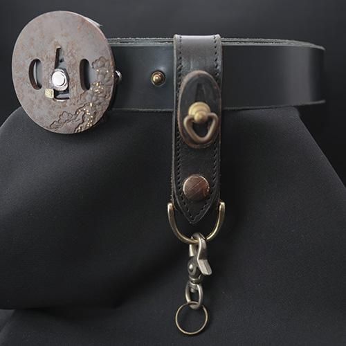 刀の柄(つか)の縁(ふち)頭(かしら)という縁の部分を使用した当店オリジナルの本革キーホルダーです。