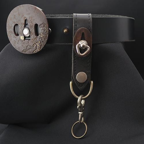 刀の柄(つか)の縁(ふち)頭(かしら)という縁の部分を使用した当店オリジナルの本革キーホルダーです。