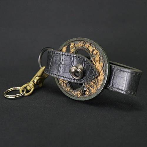 刀の鐔(ツバ)を使用した当店オリジナルの本革キーホルダーです。