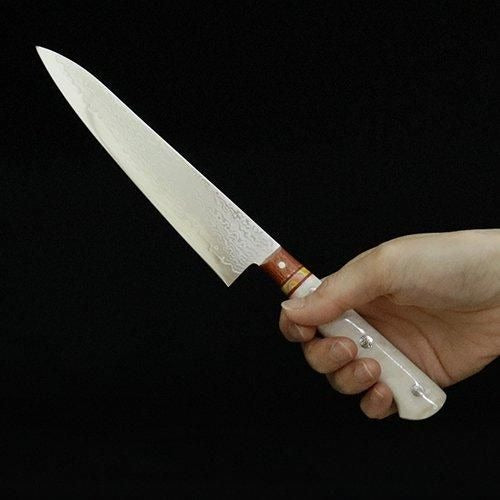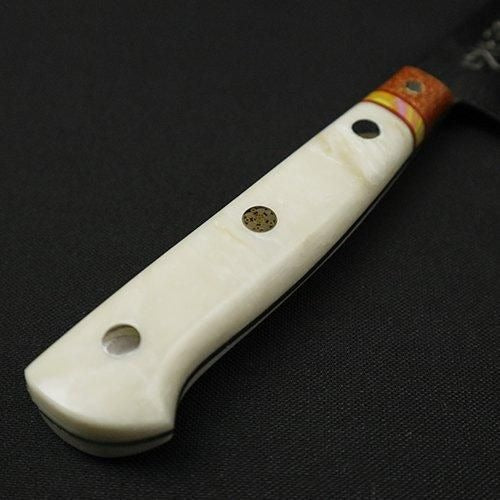 刃素材:V金10号 柄素材:オレンジマイカルタ、レインボー人工石、白の人工大理石
