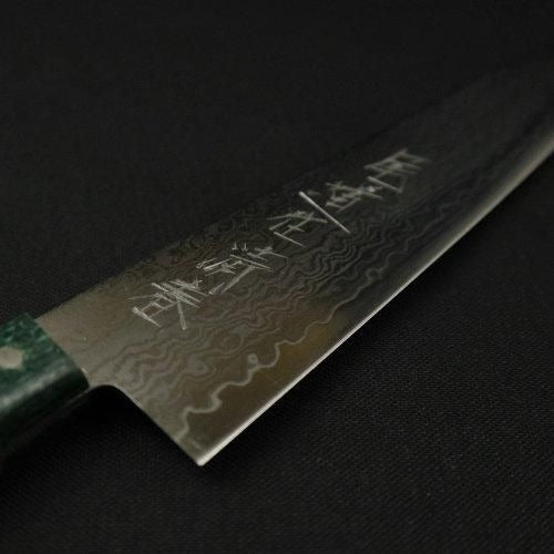 ダマスカス模様がまるで波紋のように広がる、美しさと機能性を兼ね備えた包丁です。
